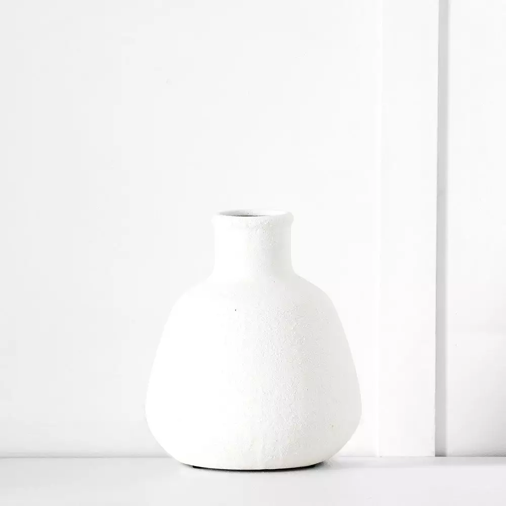 White ornaments always look good and this terracotta vase with a soft white finish will look beautiful by itself or grouped with other pieces from the range. For decorative use only, not water tight.