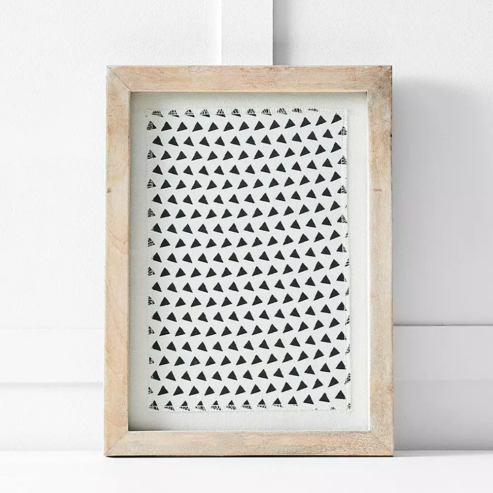 A selection of different black and white fabrics beautifully framed in Mango Wood, and kept safe under glass. These small prints make a statement alone and lend themselves to hanging in multiples.