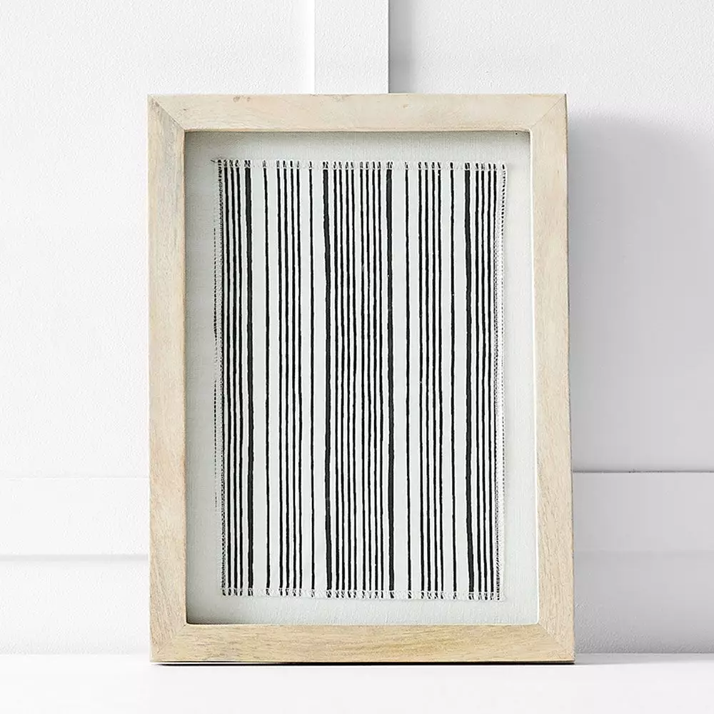 A selection of different black and white fabrics beautifully framed in Mango Wood, and kept safe under glass. These small prints make a statement alone and lend themselves to hanging in multiples.