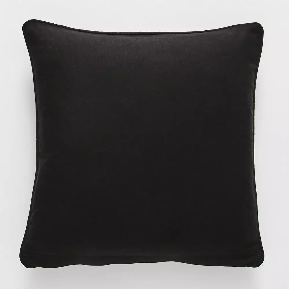A bold black and natural stripe cushion with a plain black reverse. Made from Indian cotton with a luxurious feather insert.