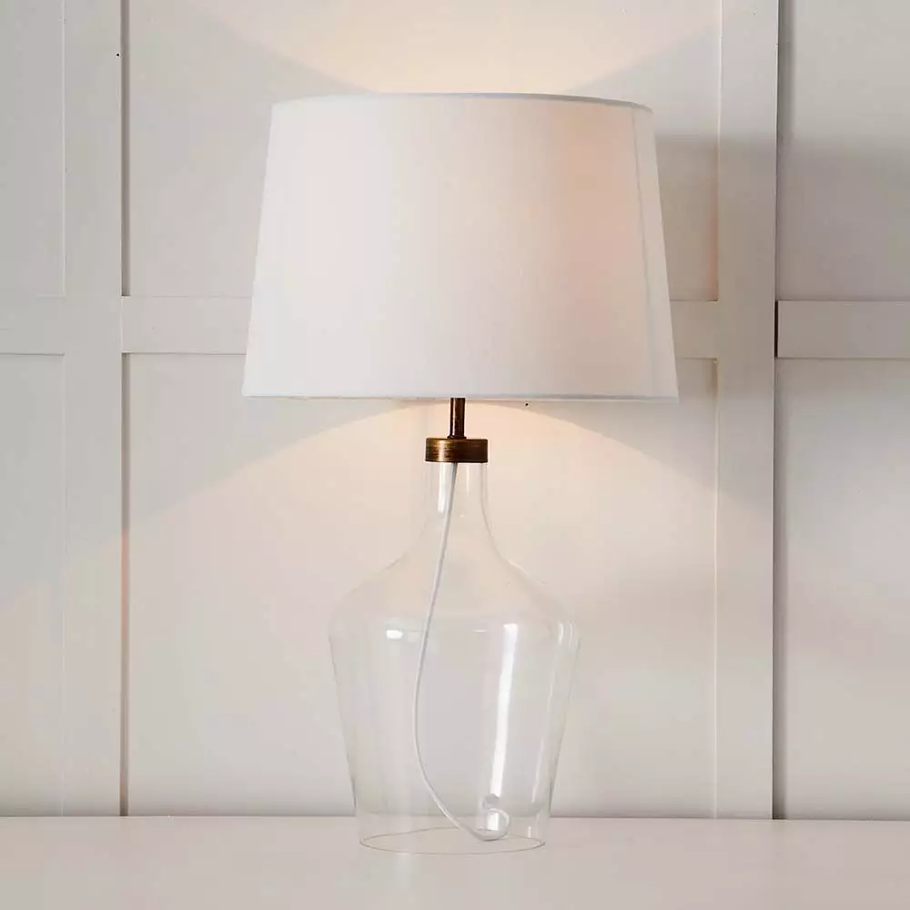 When positioned correctly, lamps can add an extra dimension and warmth to a room. The clear glass base on our Billie lamp will create the illusion of space. The white cotton shade will enable it go sit with any other colours in the room.