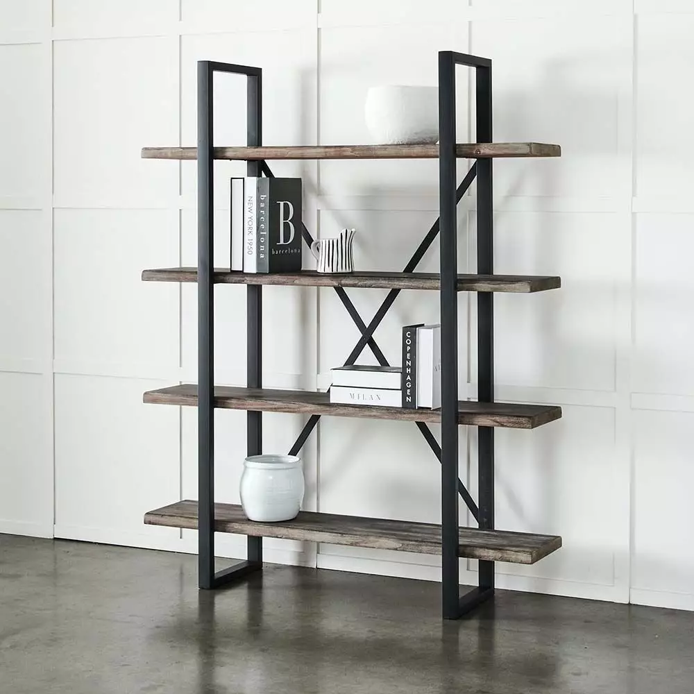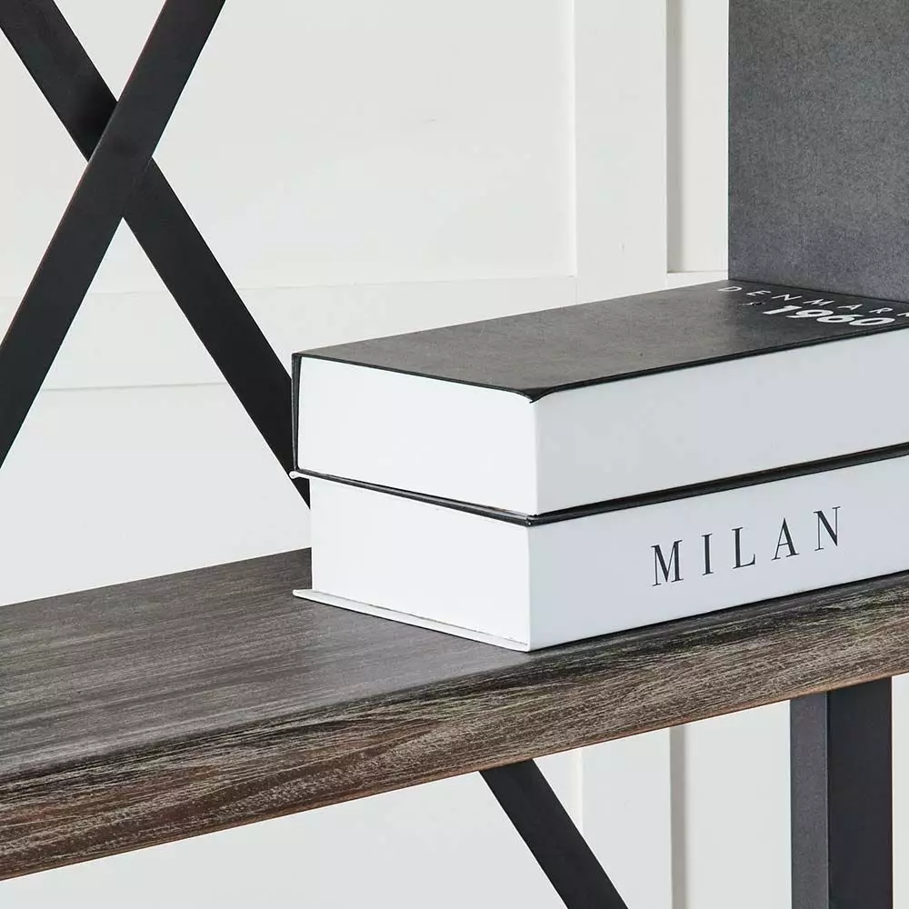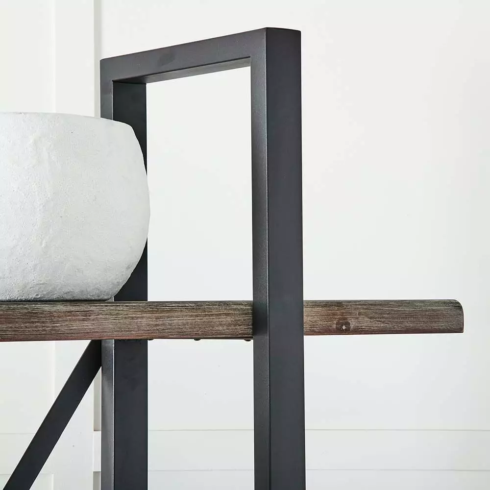 The Carlos bookshelf is a striking combination of poplar and iron. The slightly blackened shelves appear to be floating between the iron uprights. It is the perfect piece for smaller spaces and for holding your favourite books or displaying treasures. Two of them would work either side of a TV unit or a fireplace. Assembly required. We recommend fastening to the wall for extra safety.