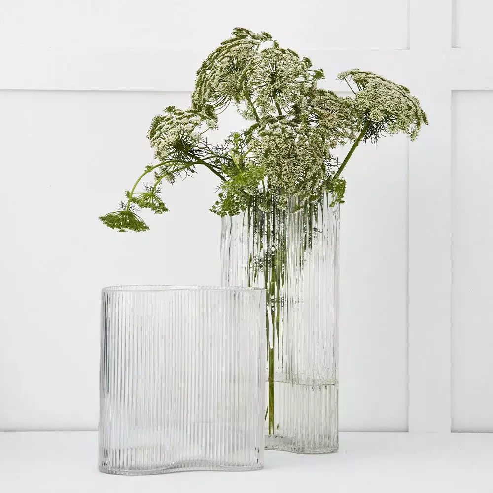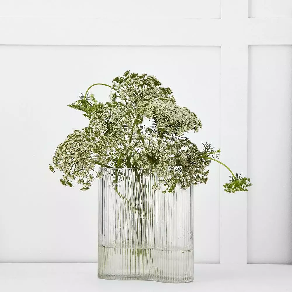 An elegant ribbed vase with an irregular shape will make even the simplest of blooms look wonderful.
