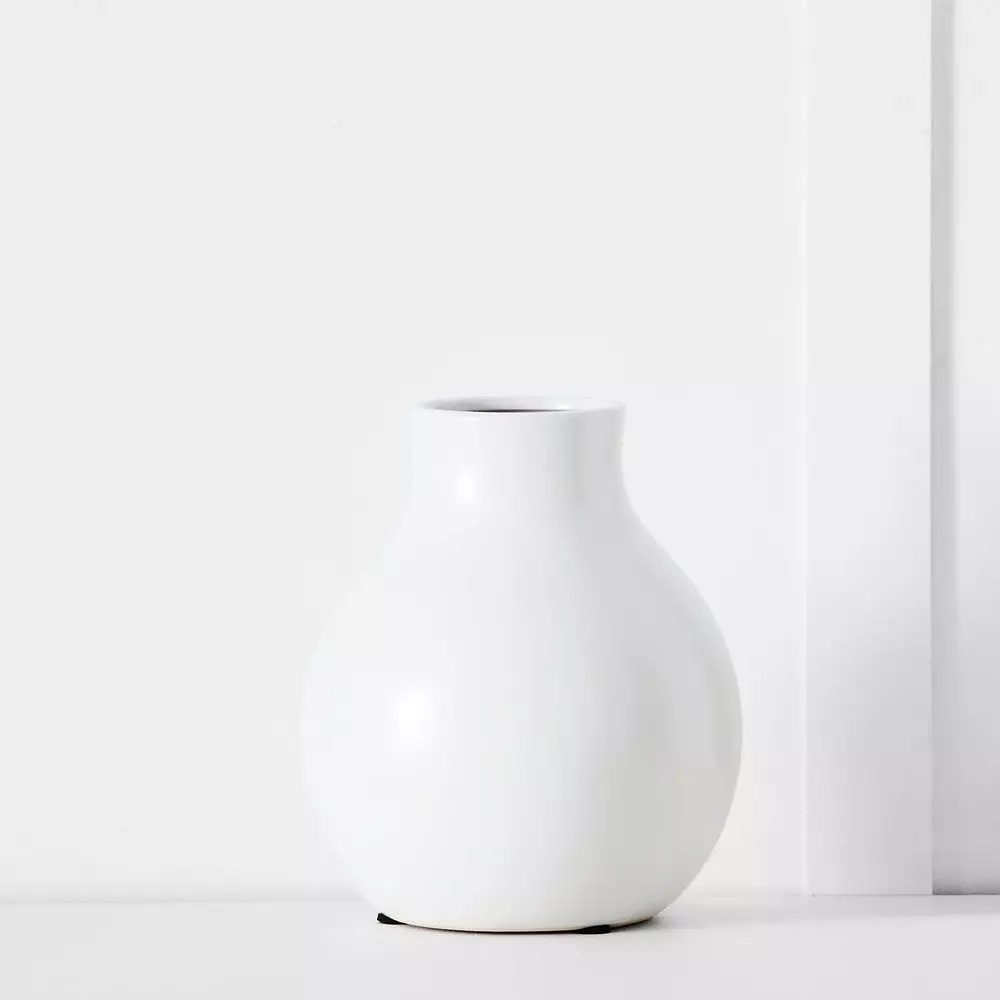 A beautifully shaped decorative vase to add to your collection. Create your own all white still life – it can make quite an impact. For decorative use only, not water tight.