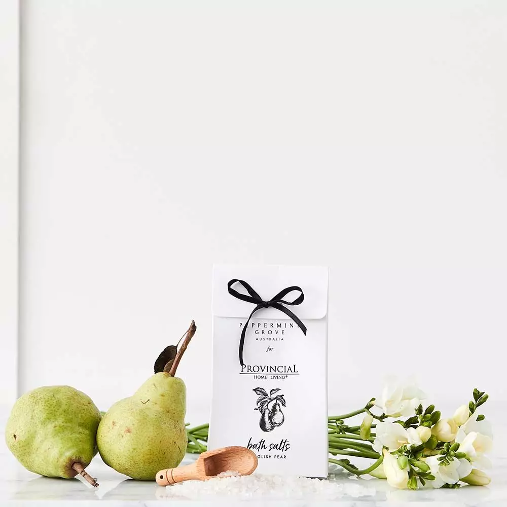 In collaboration with Peppermint Grove Australia we are delighted to showcase our limited release bath salts in our best selling English Pear scent.