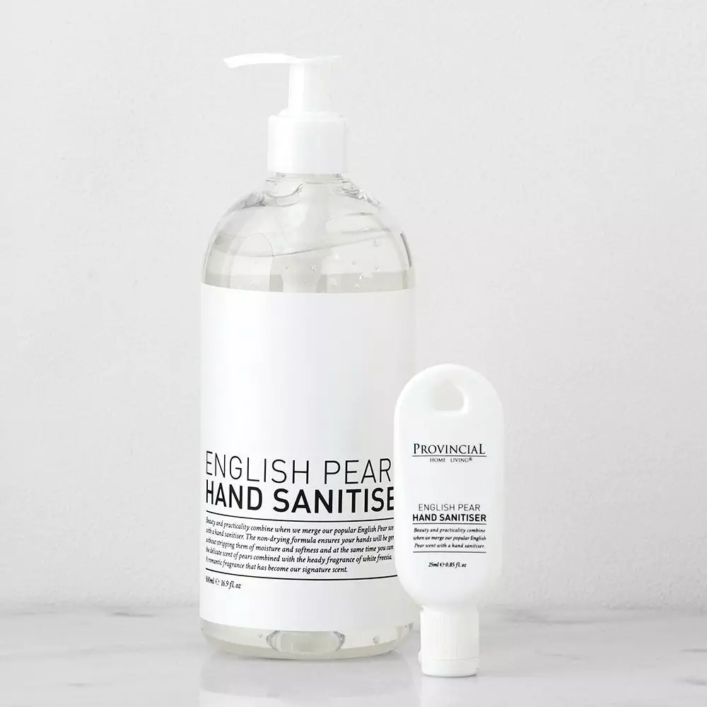 Beauty and practicality combine when we merge our popular English Pear scent with a hand sanitiser. The non-drying formula ensures your hands will be germ free without stripping them of moisture and softness and at the same time you can enjoy the delicate scent of pears combined with the heady fragrance of white freesia. A romantic fragrance that has become our signature scent.