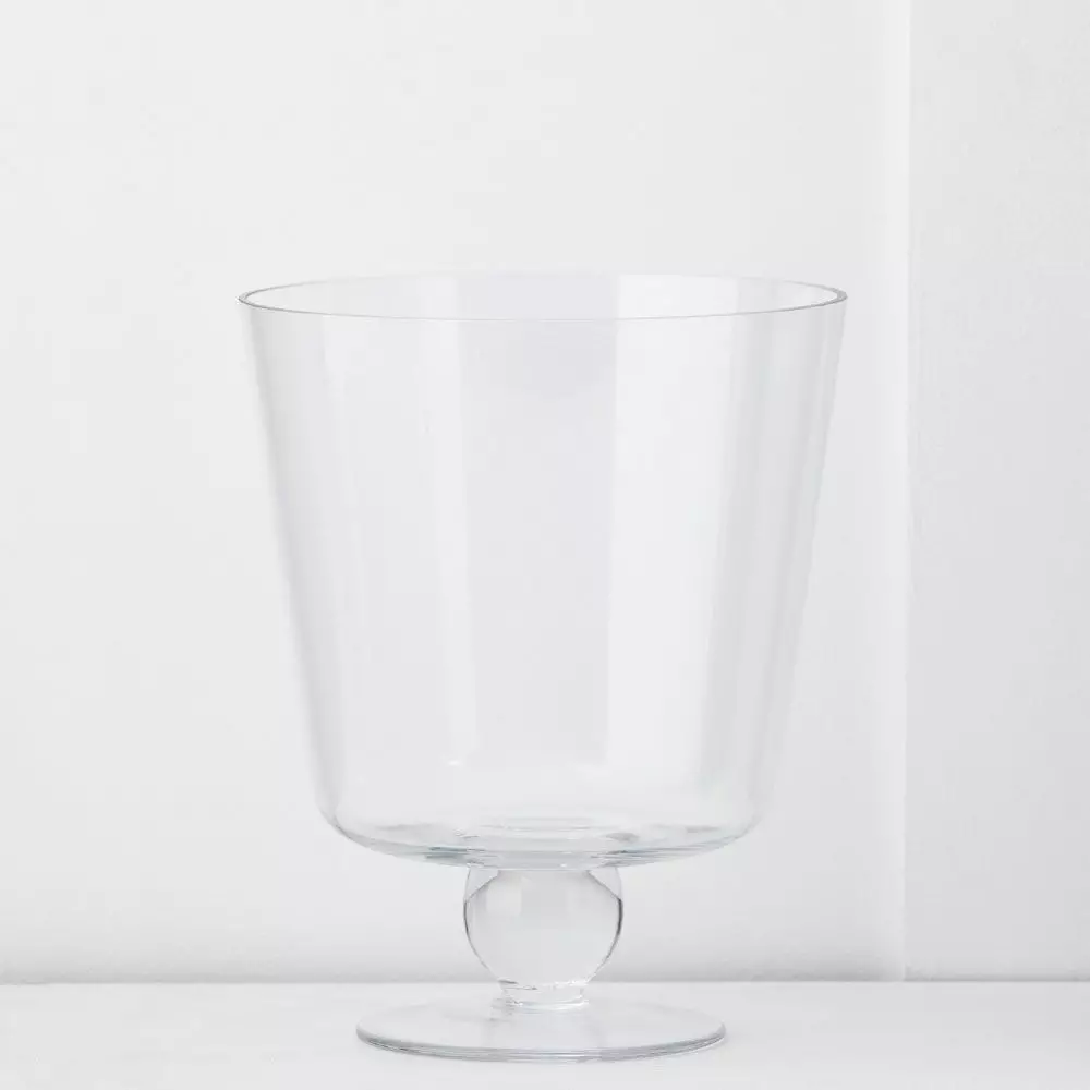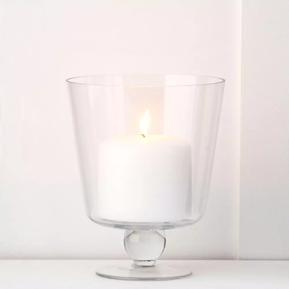 A simple clear glass hurricane lamp, which is the perfect size for our 9cm pillar candle. Pop one each end of a console table, a sideboard, or even on the dining table.