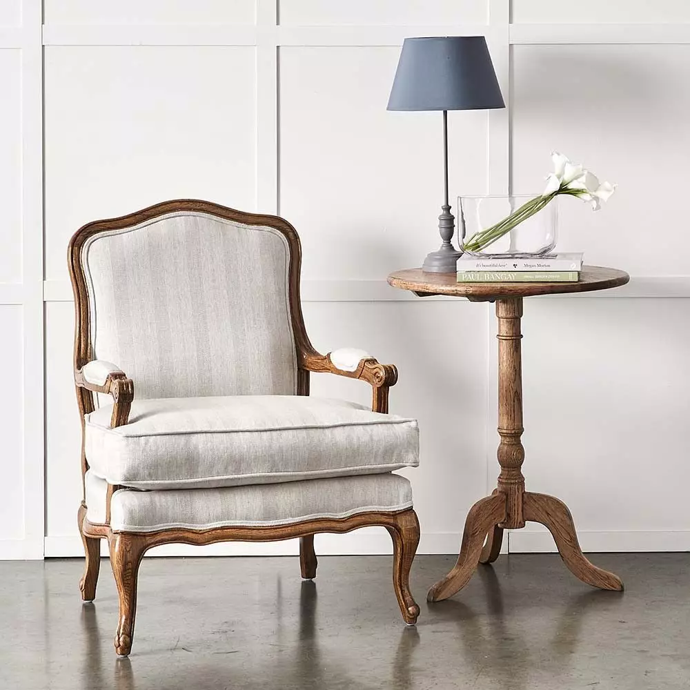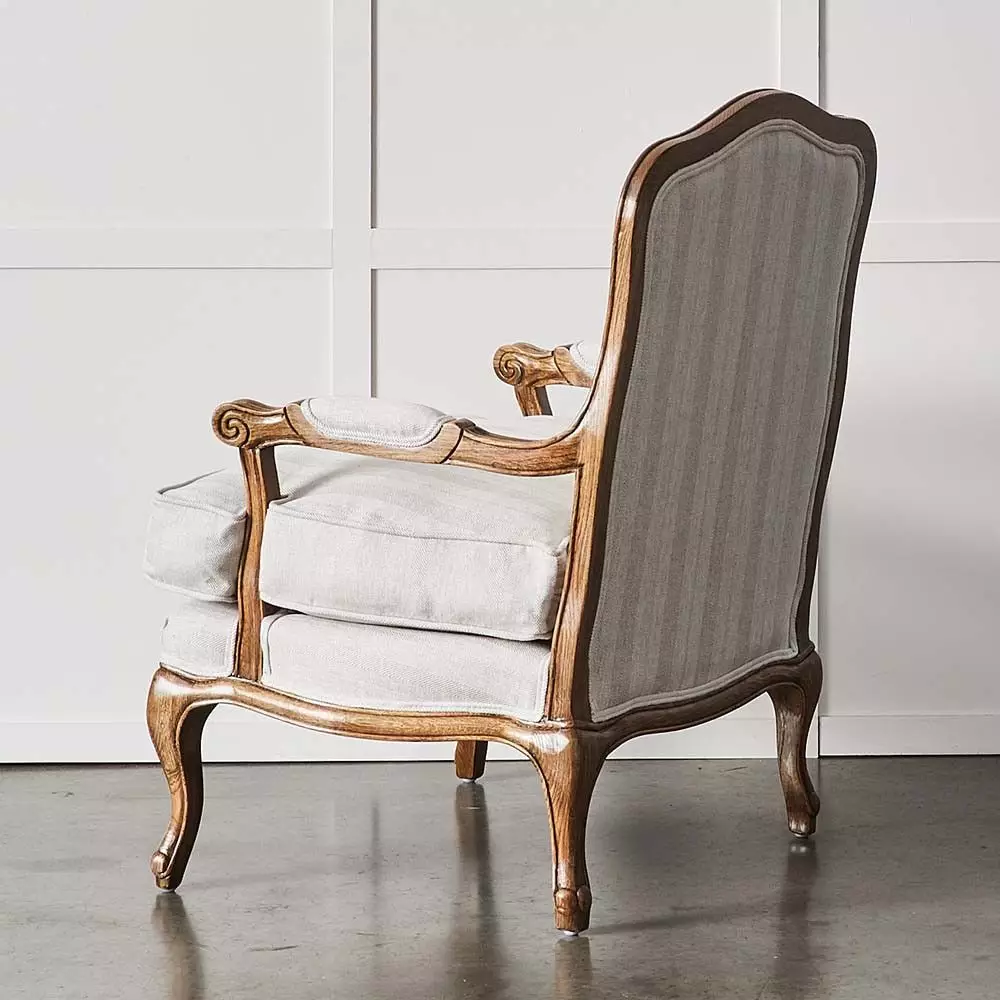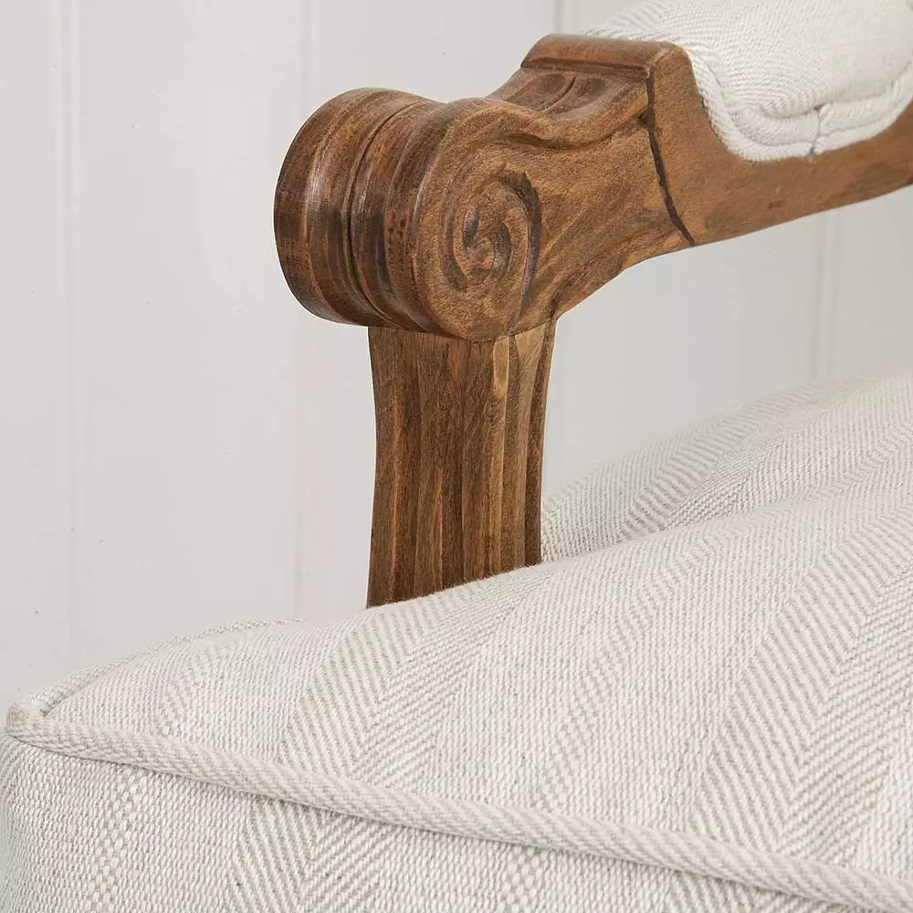 Constructed with a strong oak frame, the cushions have a core of foam covered with a mixture of feather and polyester for extreme comfort. 100% linen upholstery.