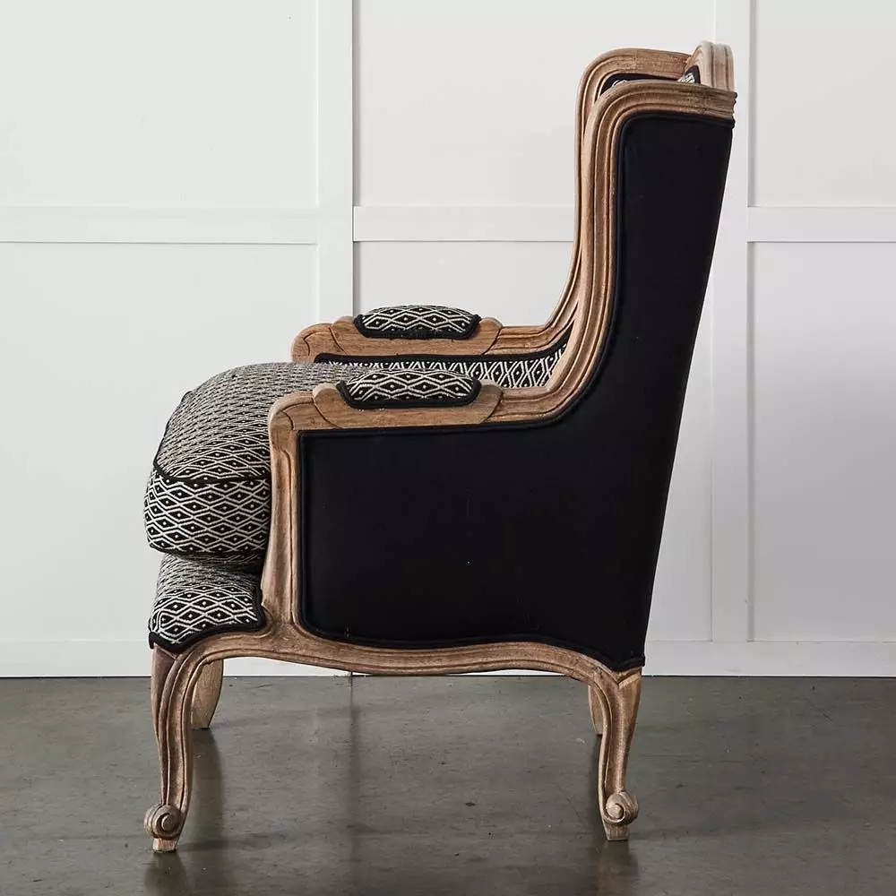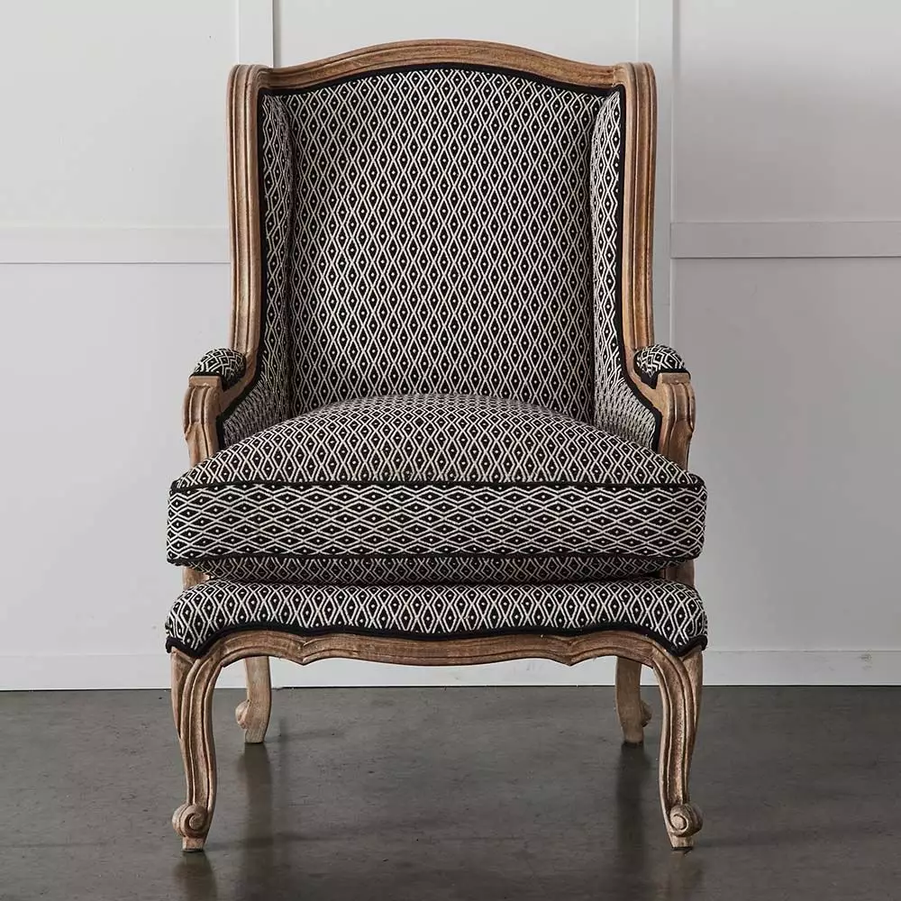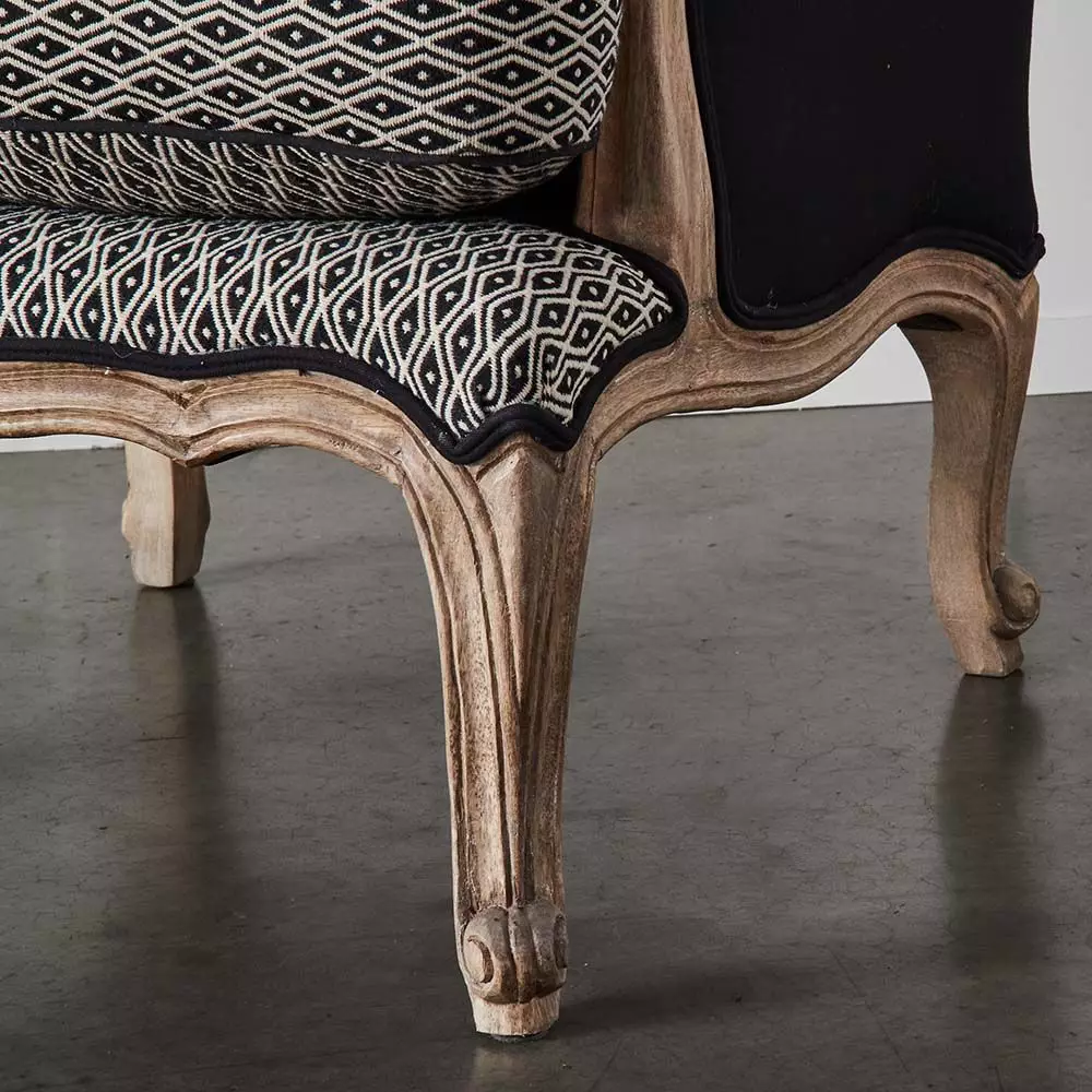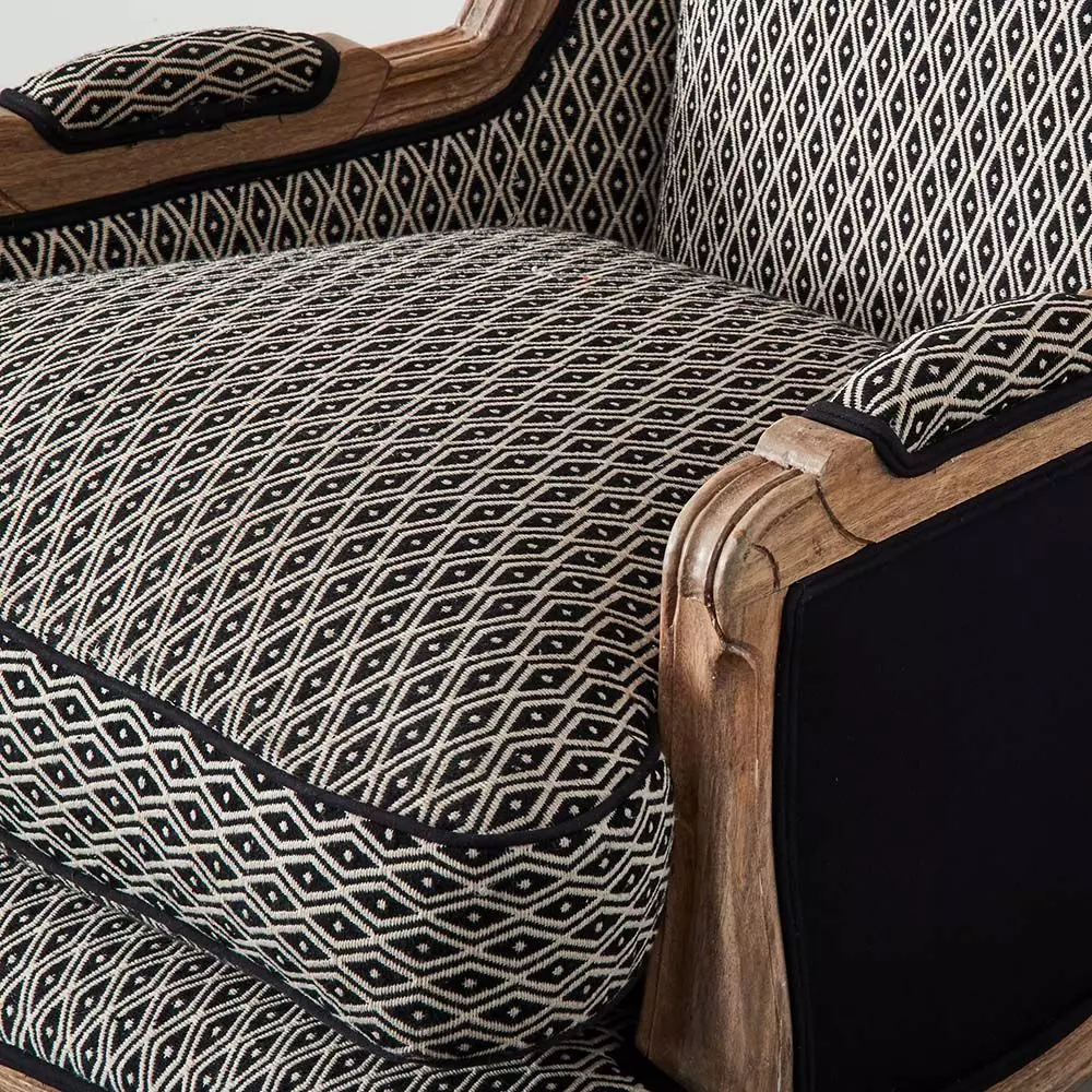 This Khadi armchair is sure to generate some excitement. It’s a little less serious than the French armchair and the bold black and ecru fabric will make a statement in any room. The frame is beautifully crafted from sustainable mango wood, and left with a raw, natural finish as a beautiful complement to the thick cotton upholstery. The cushioning is a mix of top quality, dense foam encased in polyester fibres for added comfort. Piping and a contrasting fabric on the back and sides complete this stunning armchair.