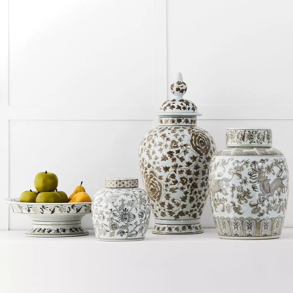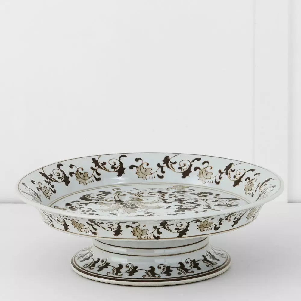 A traditional ceramic bowl in crisp white with a chestnut coloured pattern. Mix it with the jars from the same range.