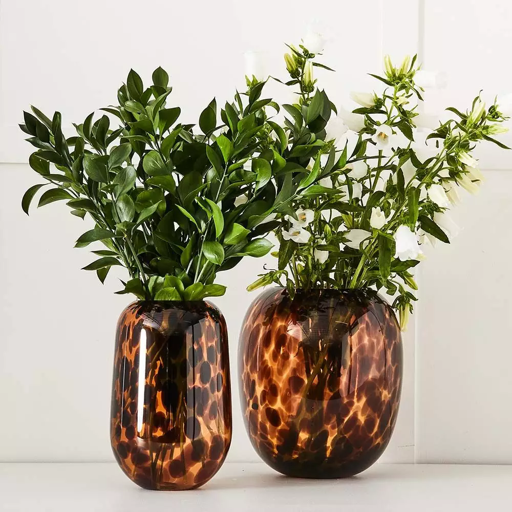 A dramatic glass vase which looks good empty and paired with the other size available or filled with your favourite flowers or foliage.
