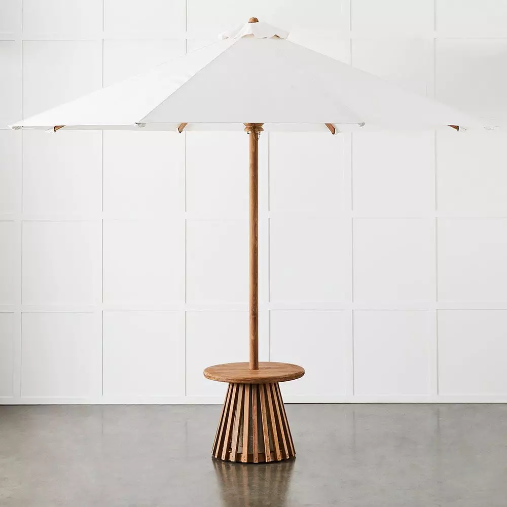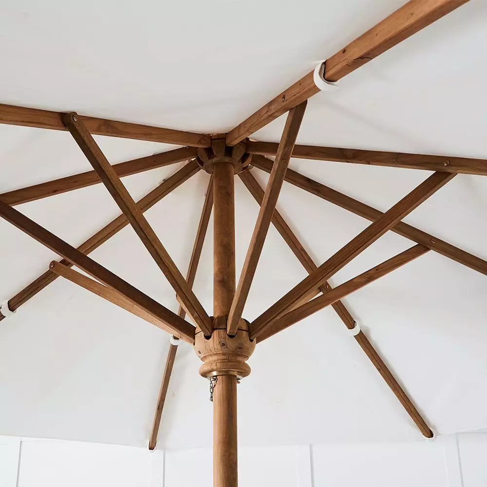Create your own garden oasis with our spectacular Paradiso Umbrella – it has a 3 metre span providing a large shade area. A classic umbrella shape, with the pole and spokes crafted from reclaimed teak. The shade part is made from a synthetic fibre called Olefin a soft, lightweight fabric designed for outdoor use.