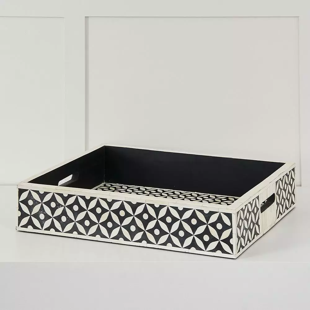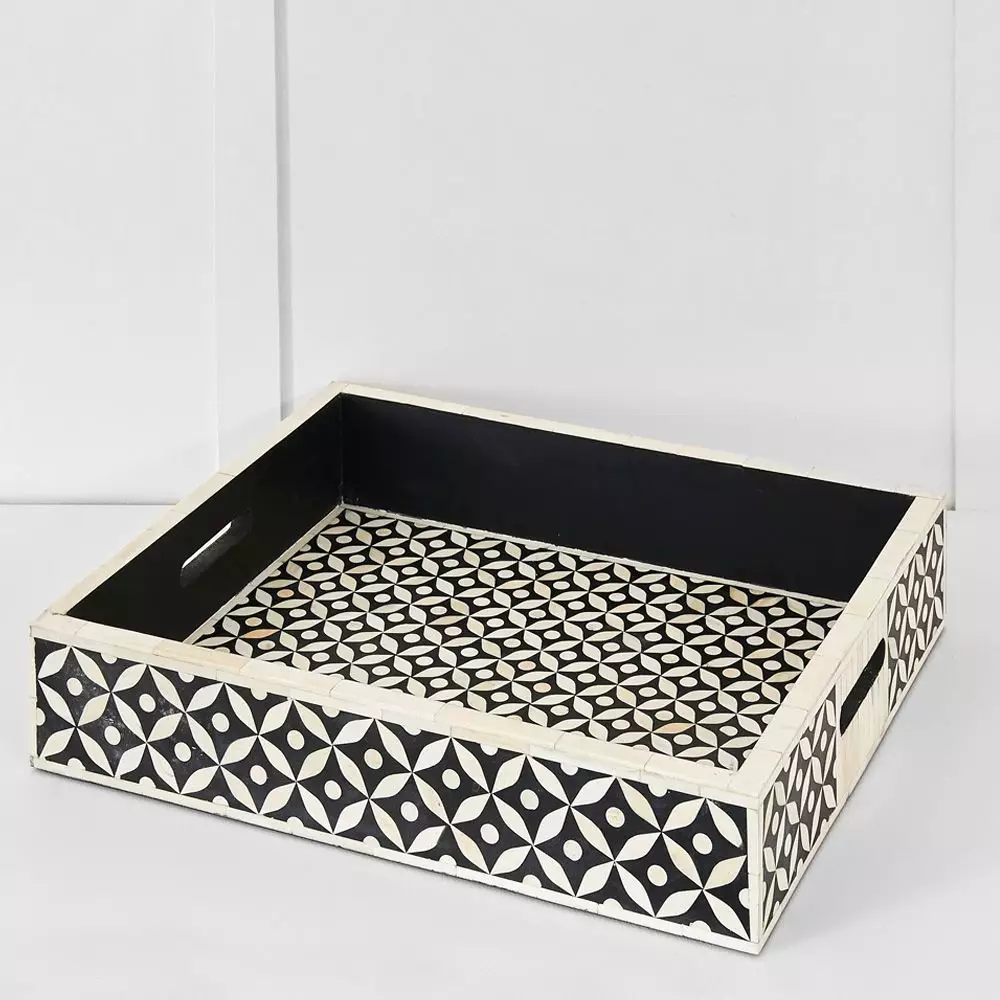 Our beautiful Mia ethically sourced bone inlay tray is the perfect addition to any household. This Sophisticated piece is both functional and decorative.