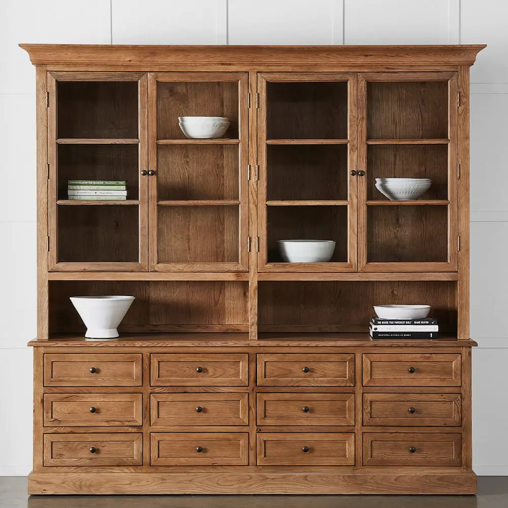 The elegant oak Rochester buffet and Hutch has all storage options covered with 12 handy drawers to keep things neat and tidy while being out of sight but easy to access. Two open compartments give access to items used all the time and the slightly blue hued, tempered glass doors in front of 3 shelves will keep treasures dust free but on display. Beautifully crafted from oak. It comes in two pieces for easier transportation and access into homes.