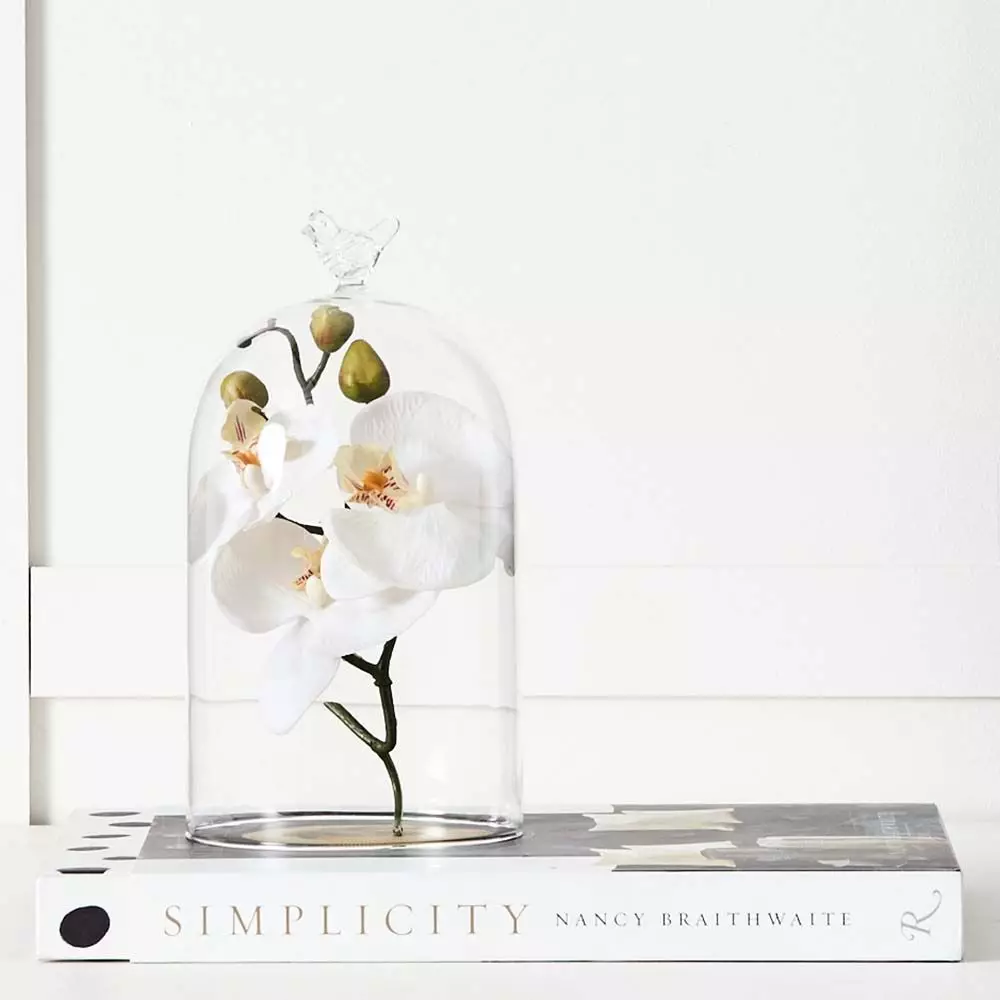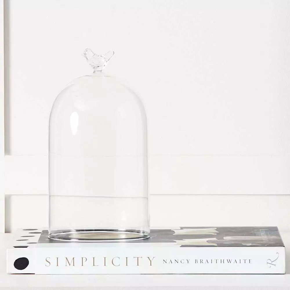 A decorative glass dome with a bird on the top. Put your favourite collectibles underneath and change regularly for a new look.
