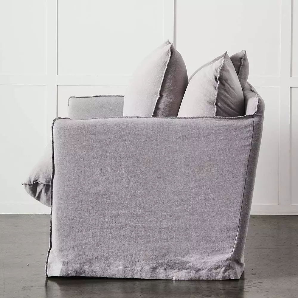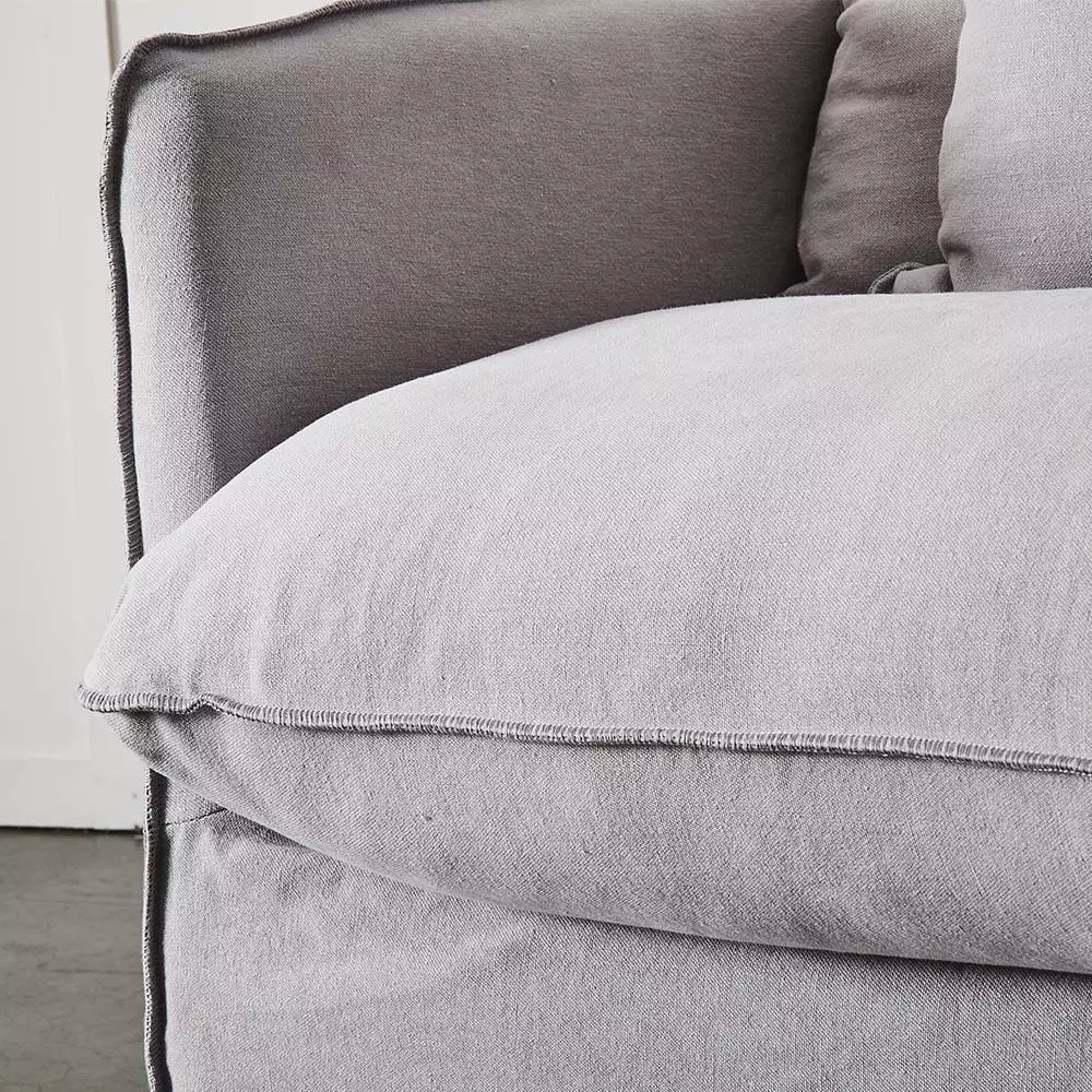 The frame is made from Canadian pine, steel springs, the foam cushioning is covered with a mixture of feather and polyester fibre for an extra comfortable seat. The covers are 100% linen with a decorative overlock stitch. All covers and cushions can be removed for professional dry cleaning.
