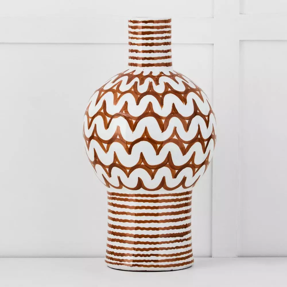 Make a statement with this gorgeous curved and decorated vase. No need to add flowers – it’s beautiful just by itself.