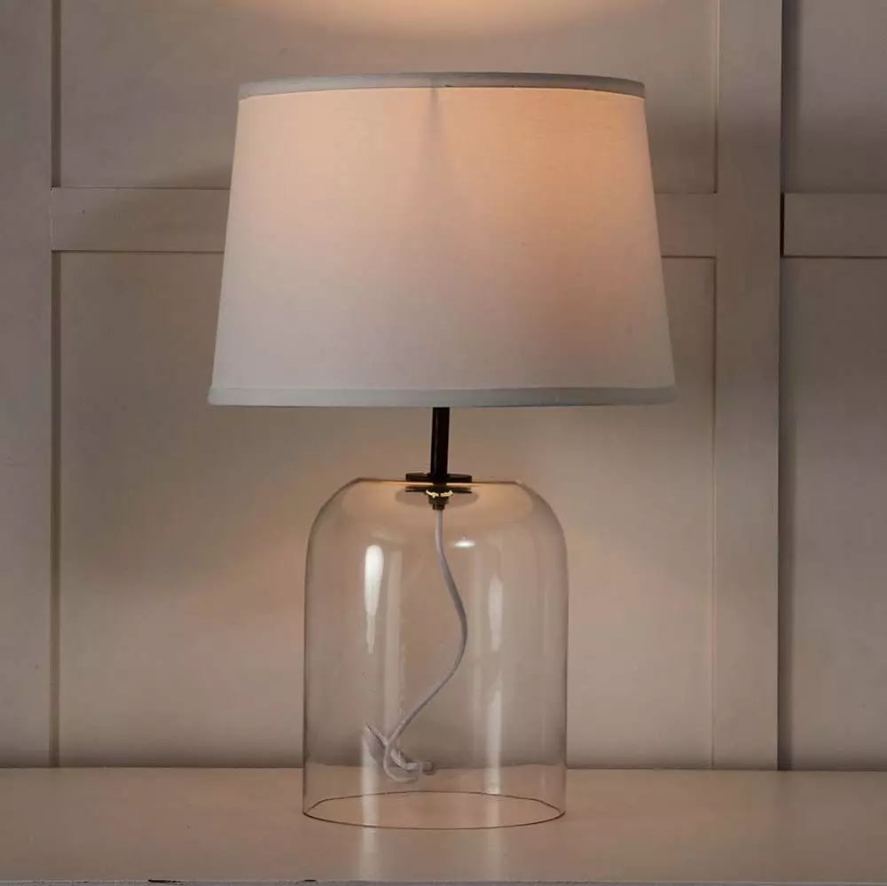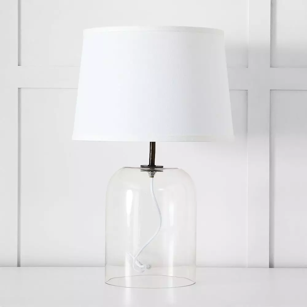 When positioned correctly, lamps can add an extra dimension and warmth to a room. The clear glass base on our Stevie lamp will create the illusion of space. Topped with a white cotton shade.