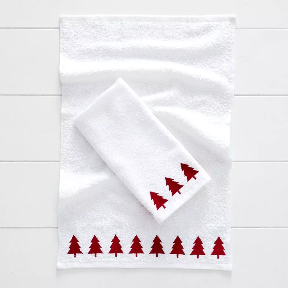 Why should the powder room miss out on some Christmas cheer? These lovely hand towels with red emboidered trees are perfect.